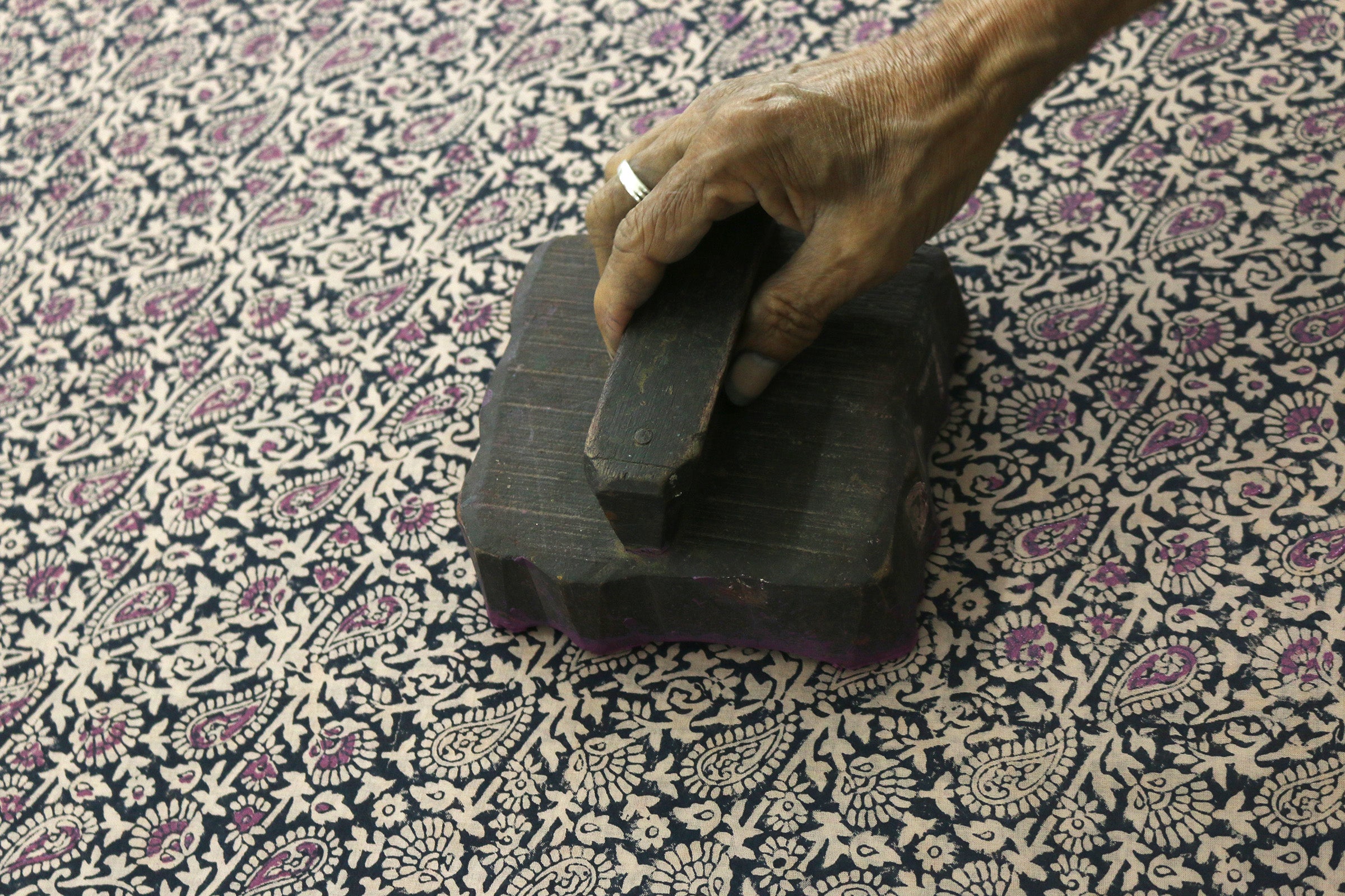 Our block printing is done by hand by one of the oldest and last surviving studios of its kind, run by two generations of women. The studio’s roots - in silk saris – are also deeply embedded in art and culture. Our prints are Exclusive Vintage archives from the 70's. All colours are handmixed and all dyes are non toxic natural dyes.