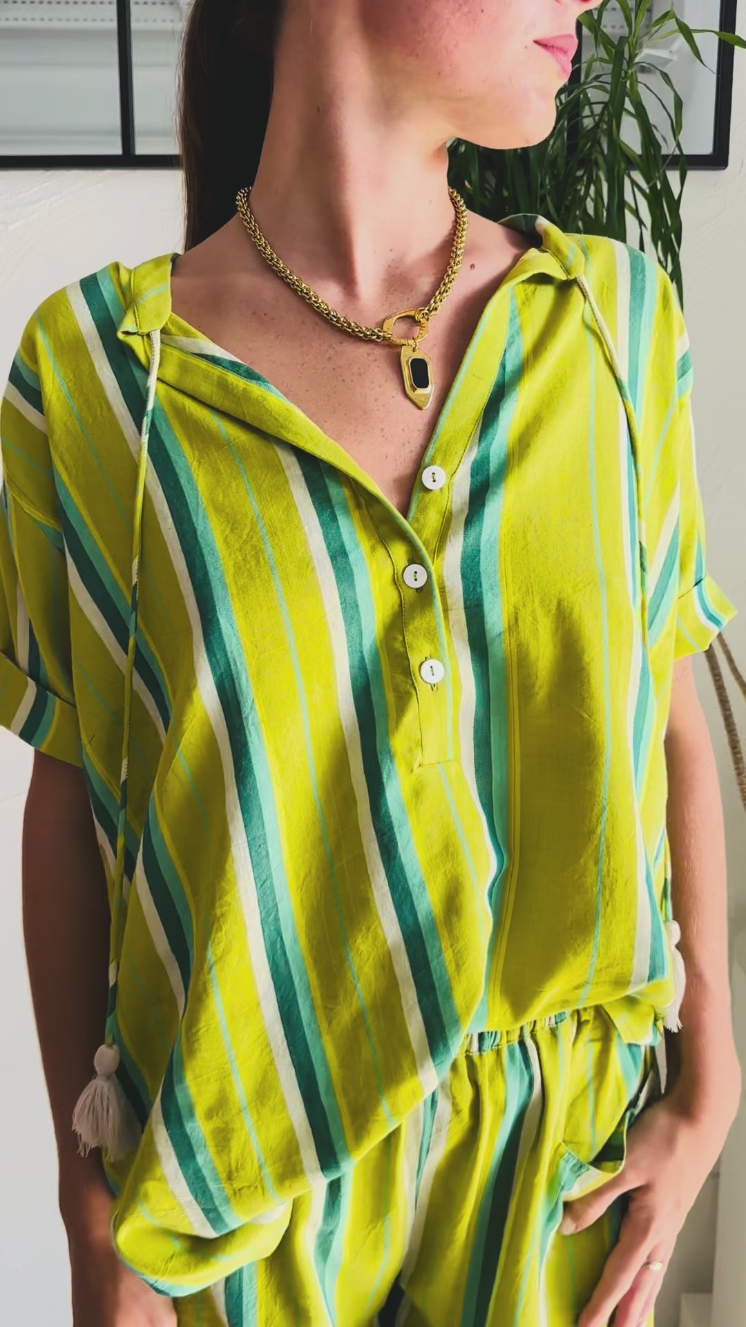 Ethically made and entirely unique, each blouse carries the subtle shimmer of artisan craft. Loose-fitting and free size, wear it open and flowing, French tucked for a relaxed silhouette, or style it with our signature Shorts for an elegant, resort-inspired set.
